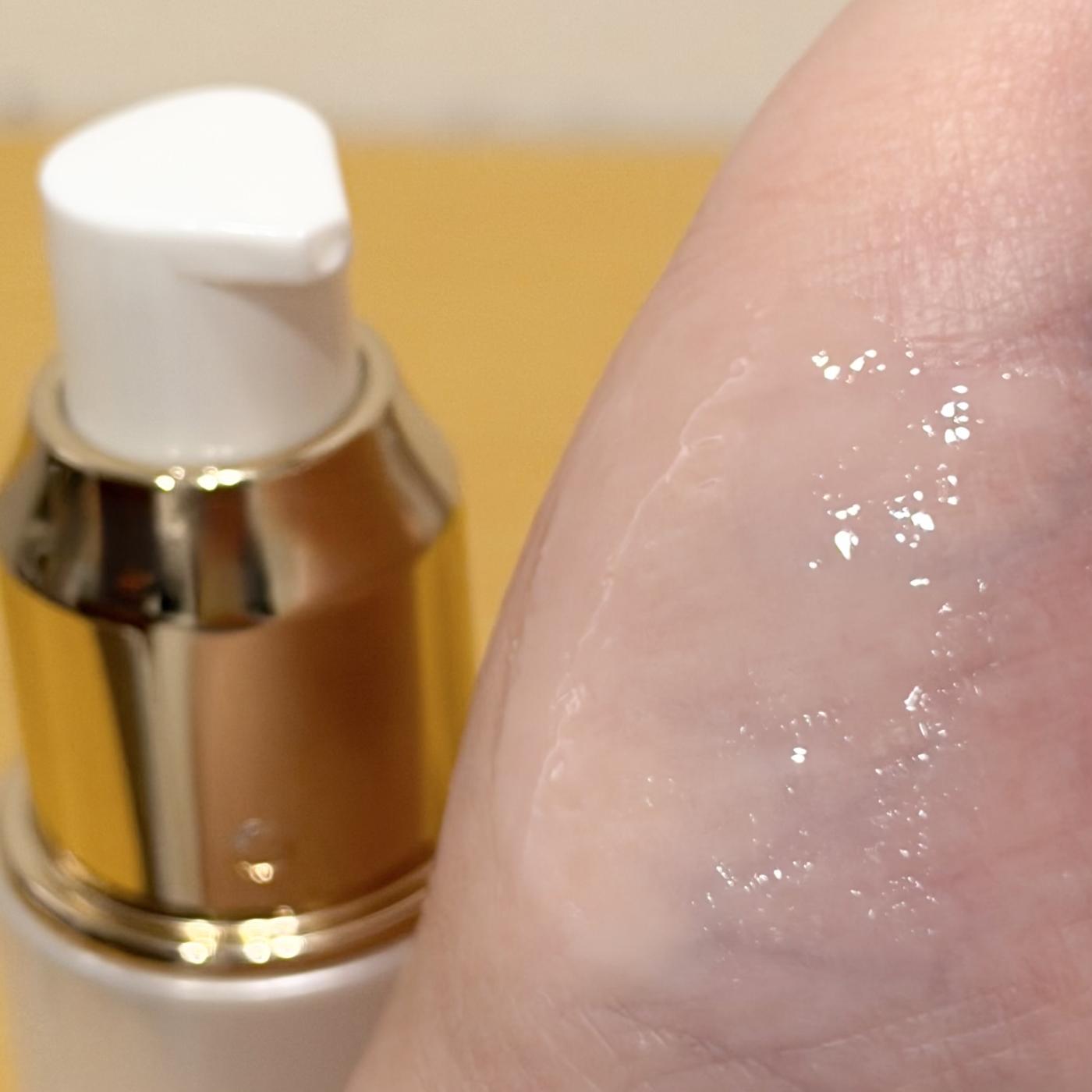 テクスチャーはなめらかで、乳液だけど重たさを感じにくく、肌にのばすとすっとなじむ印象。