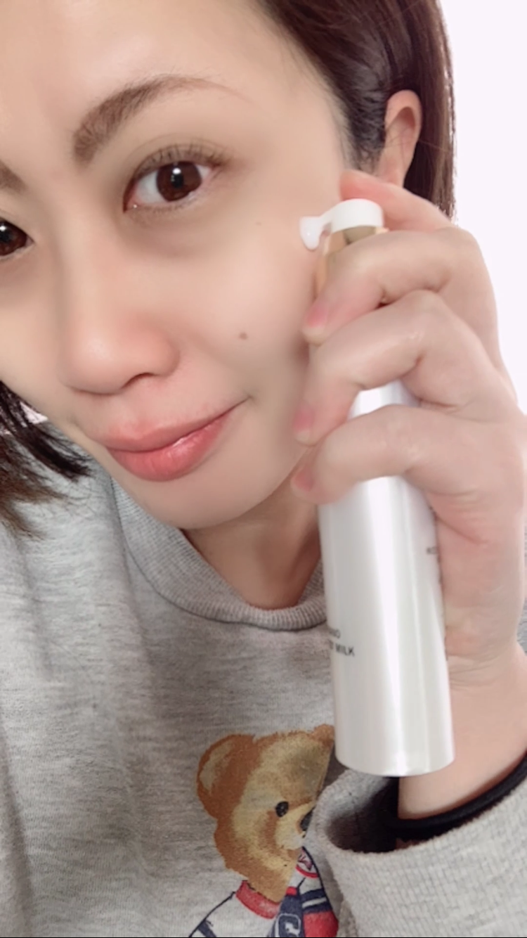 馴染ませた後の肌質に注目💕 ナノモイストミルク自体は半透明になって馴染んでいくよ!