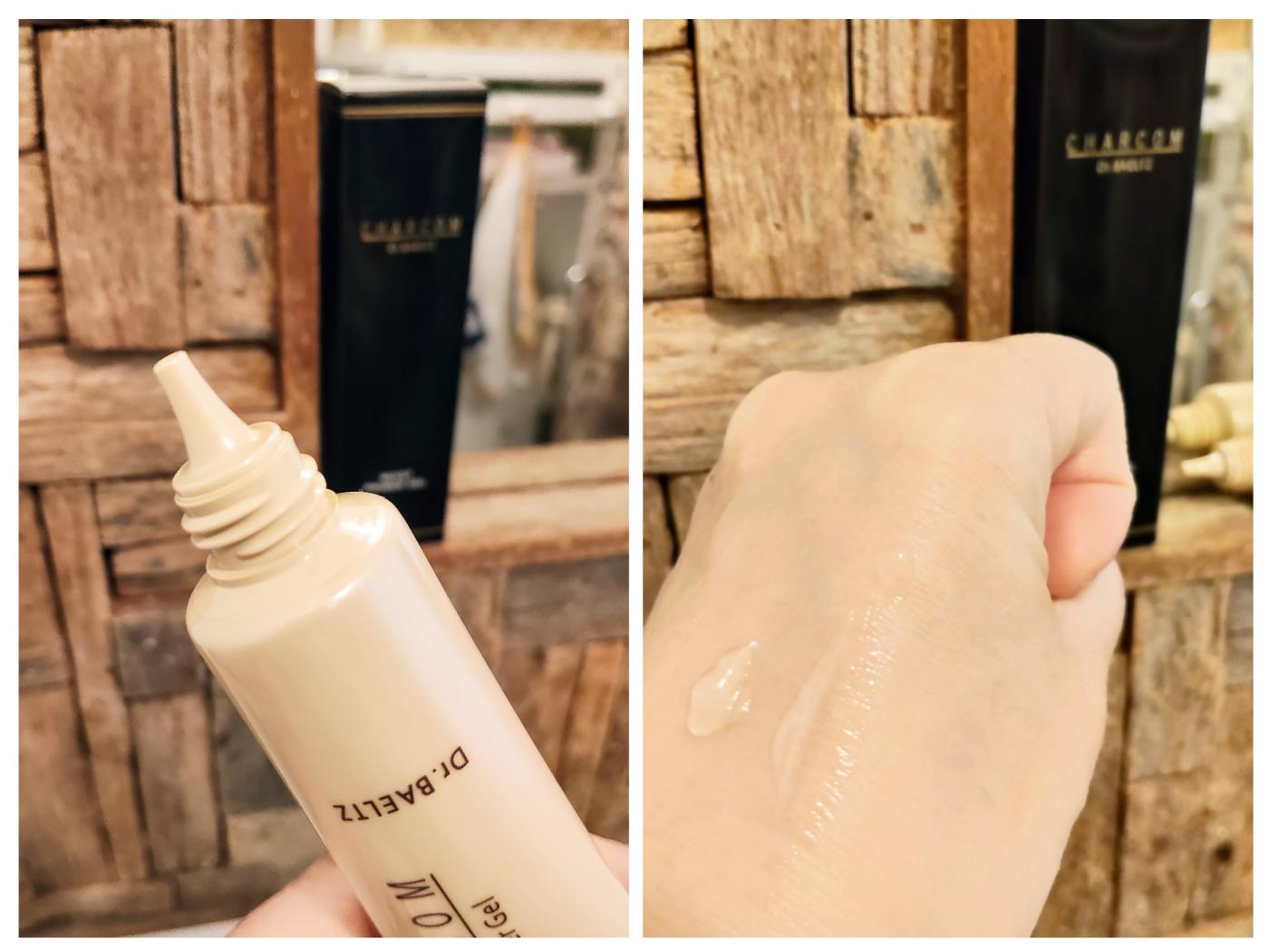 まずは化粧下地、伸びが良く瑞々しい透明ジェル。