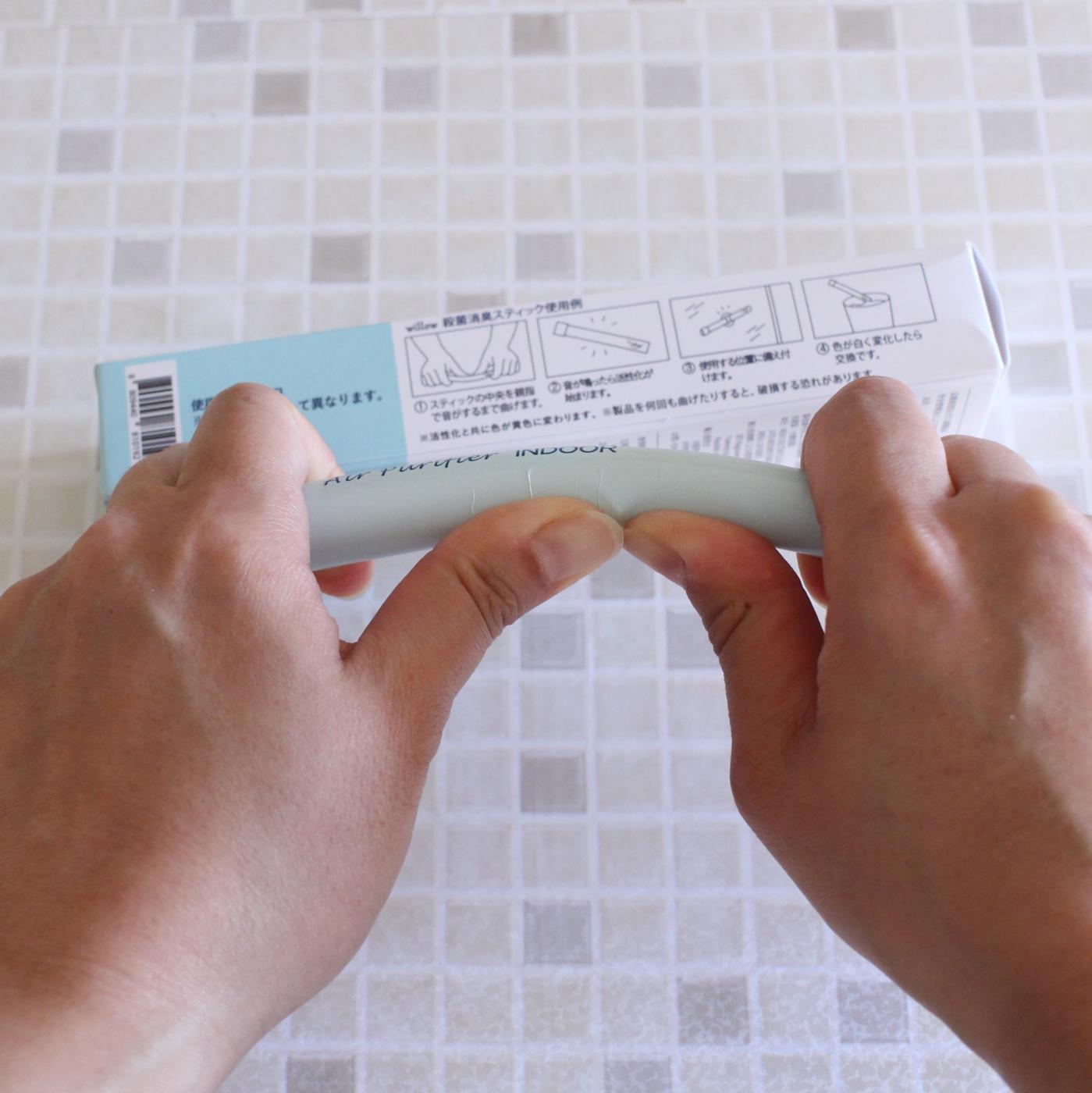 使用するときは、本体をグイっと折り曲げて、音がすると活性化が始まります。