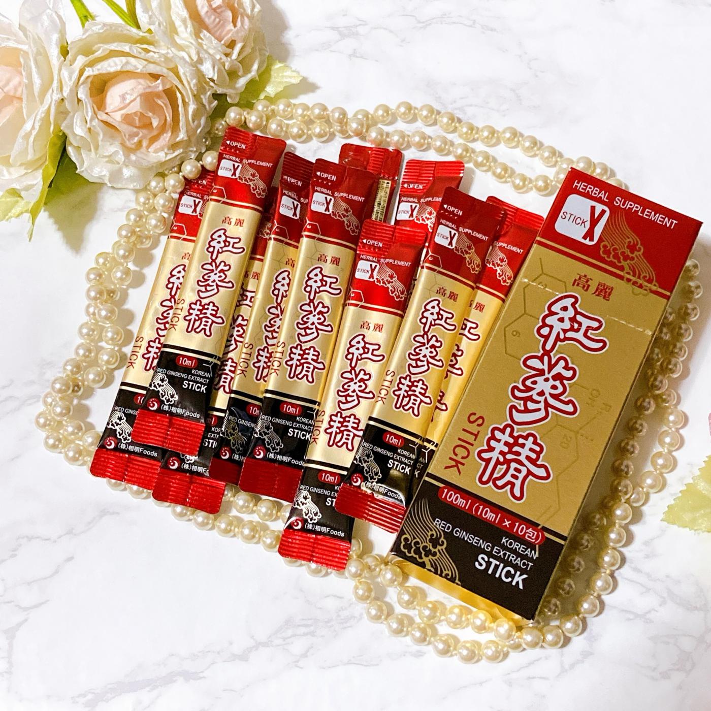 高麗紅参精エキスをベースに吸収力の高い発酵紅参液、豊富な栄養素のローヤルゼリー、オリゴ糖、アカシア蜂蜜を配合された、持ち運びも楽々で摂取しやすいスティックタイプです❤️