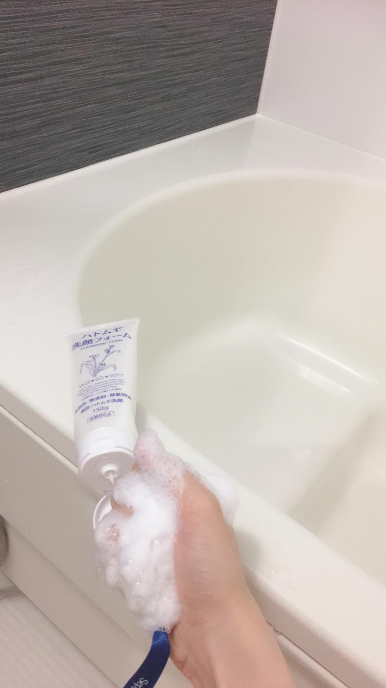 すべての商品に天然保湿成分ハトムギエキスを中心に肌に優しい成分配合。とのことで、この洗顔フォームにも❣️