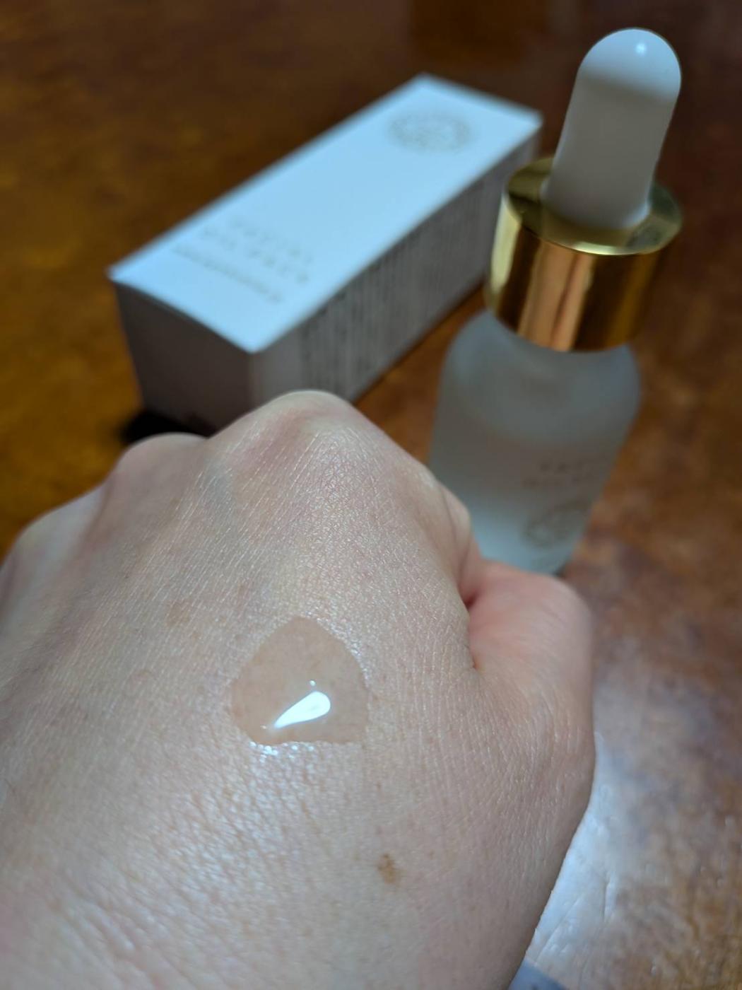 サラッとしたみずみずしい透明なテクスチャーで、伸びがよく、肌になじませやすいです。