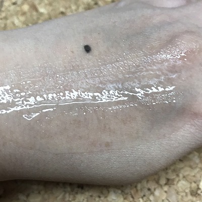 とろりとした美容液のような化粧水で塗ったときは多少のべたつきがあります。