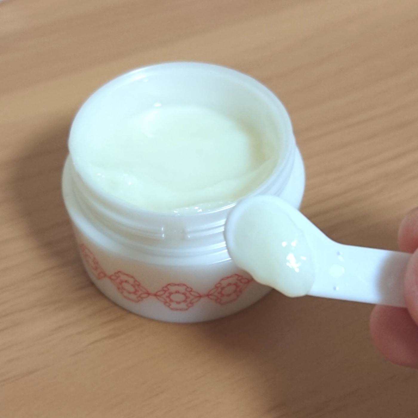 一回の使用目安量はパール一粒分とありますが、このクリーム、とても伸びがよくて、かなり濃密な感じなので、私はもっと少なくても十分です。