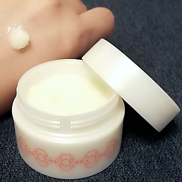 洗顔後化粧水でお肌を整えてから、スパチュラでパール粒大を取り両手のひらで馴染ませてハンドプレスで使用してみました。
