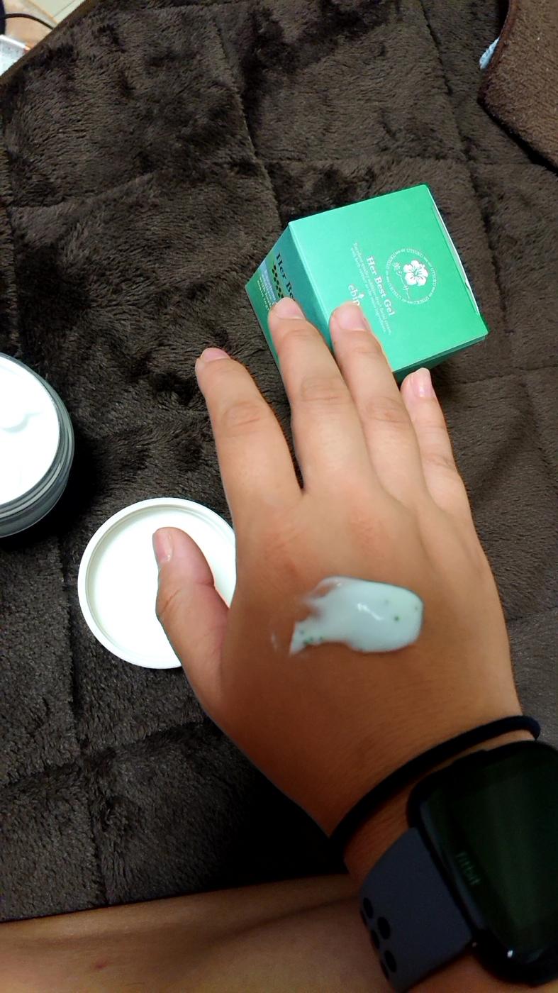 緑色のゲルクリームを手に取り、肌に馴染ませるととてもしっとりします。そして下から上へとマッサージすると肌が引き締まったように感じました?毎晩使ってみて乾燥肌が改善されることを期待します!美容成分がたくさん配合されていてオススメです❗