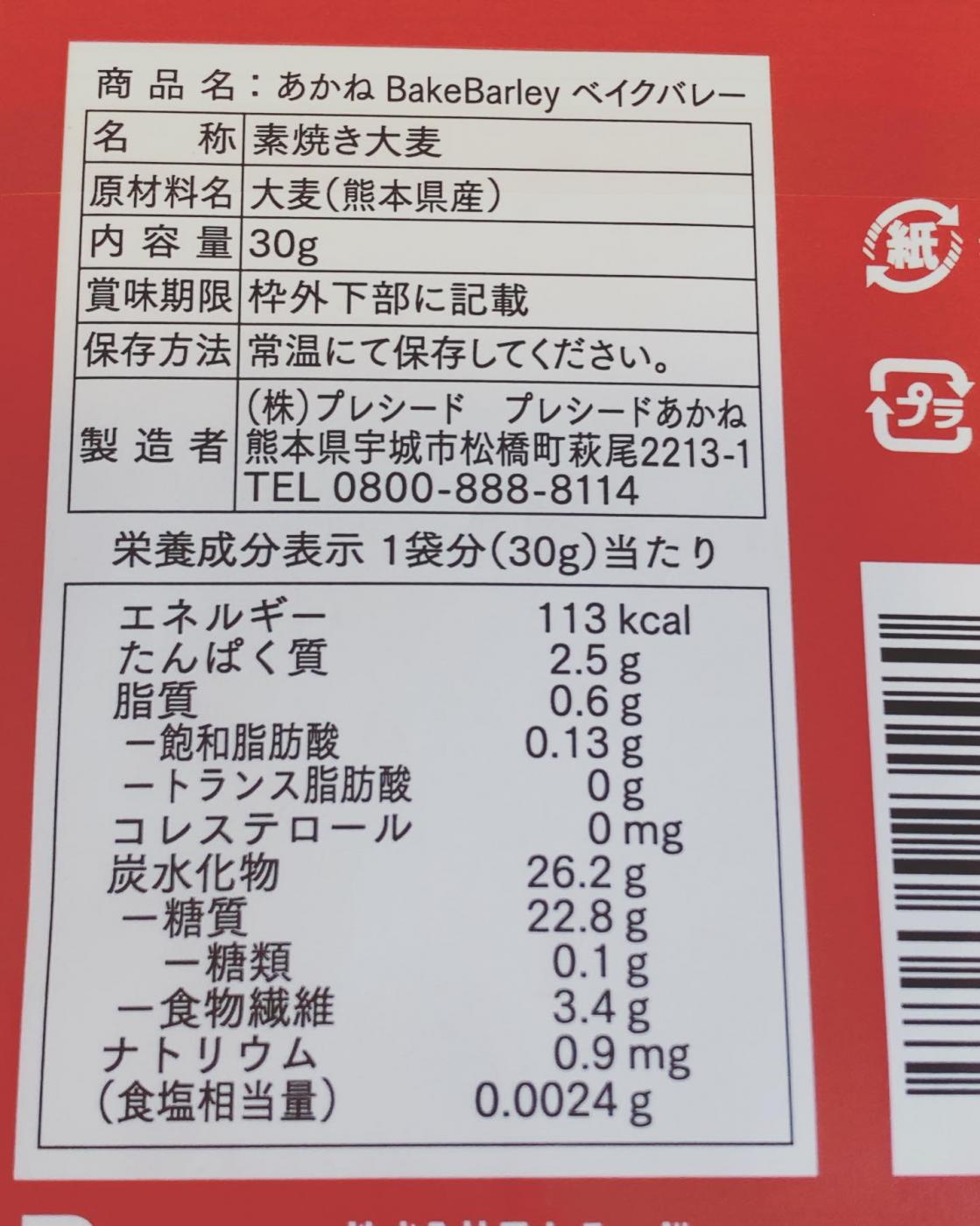 大麦“ベイクバレー”で、3.6gの食物繊維が