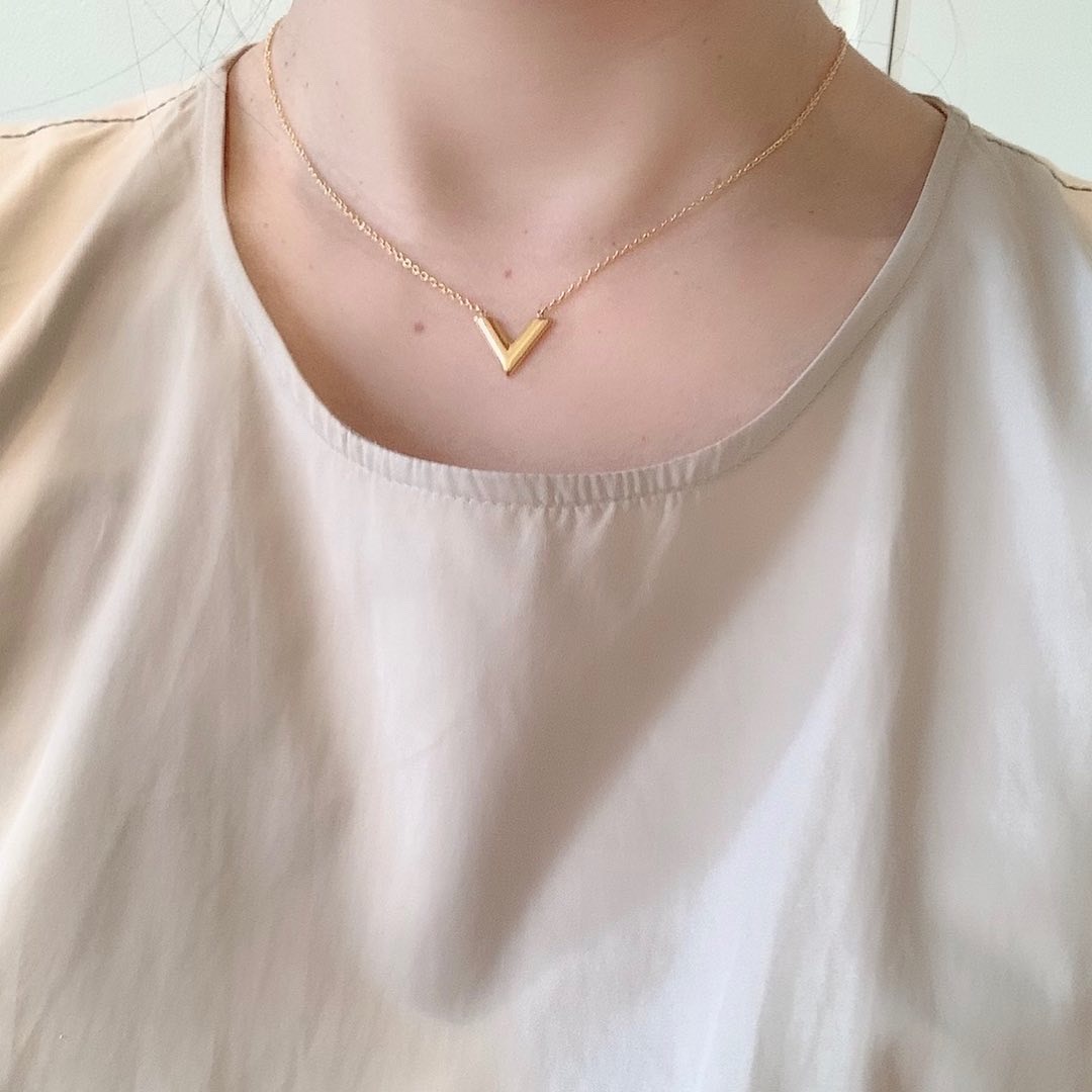 シンプルで使い勝手の良い、 Ecllianceで最も売れている【V.Necklace】のネックレスをつけてみました...