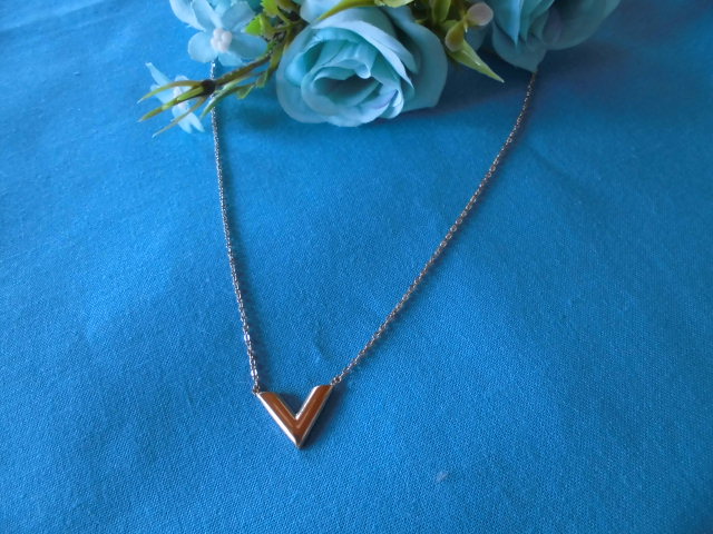 黒い色の服と合わせると、特に色合いや形が際立って目立たせる事が出来るように感じました。単一カラーの服と合わせるとワンポイントになるところも良いです。Vの形のサイズもほど良く、身に着ける事で良い事が起こりそうに感じました!