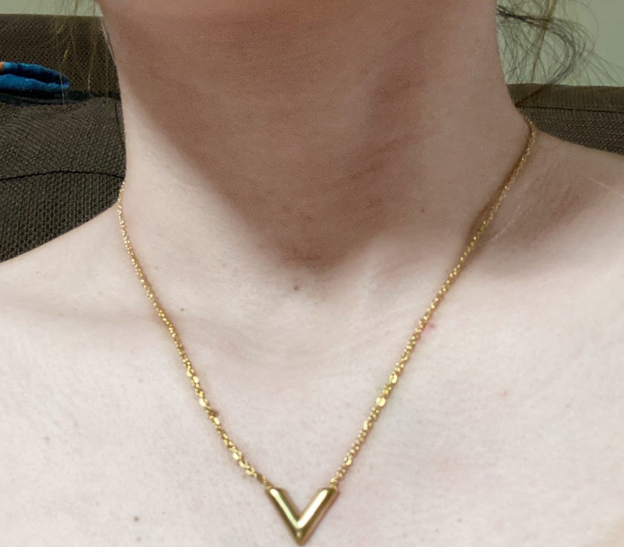 初めてモニターでアクセサリーを頂きました。Vの形のネックレスで私が頂いたのはゴールドカラー。シルバ...