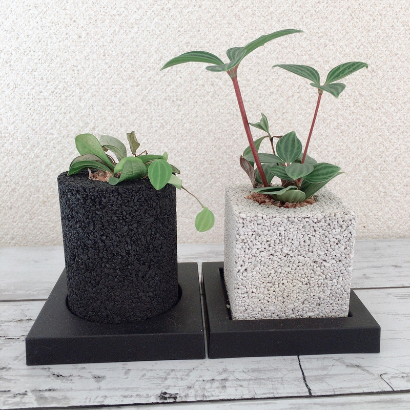 黒い素材は「竹炭」、白い素材は鹿児島の桜島の火山灰『シラス』を使用しています。