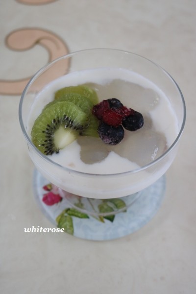 キウイや凍ったブルーベリーやラズベリーを添えて・・・