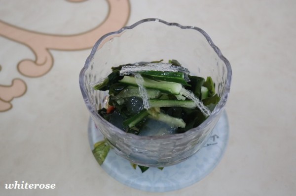 若芽や糸寒天、胡瓜などを入れて