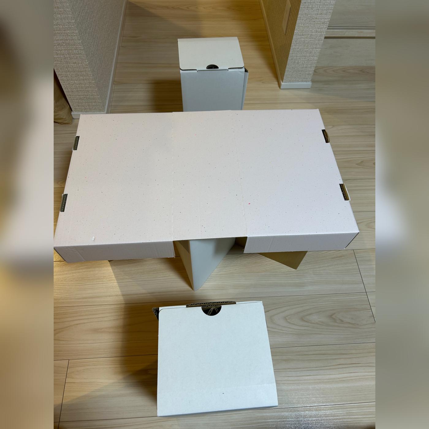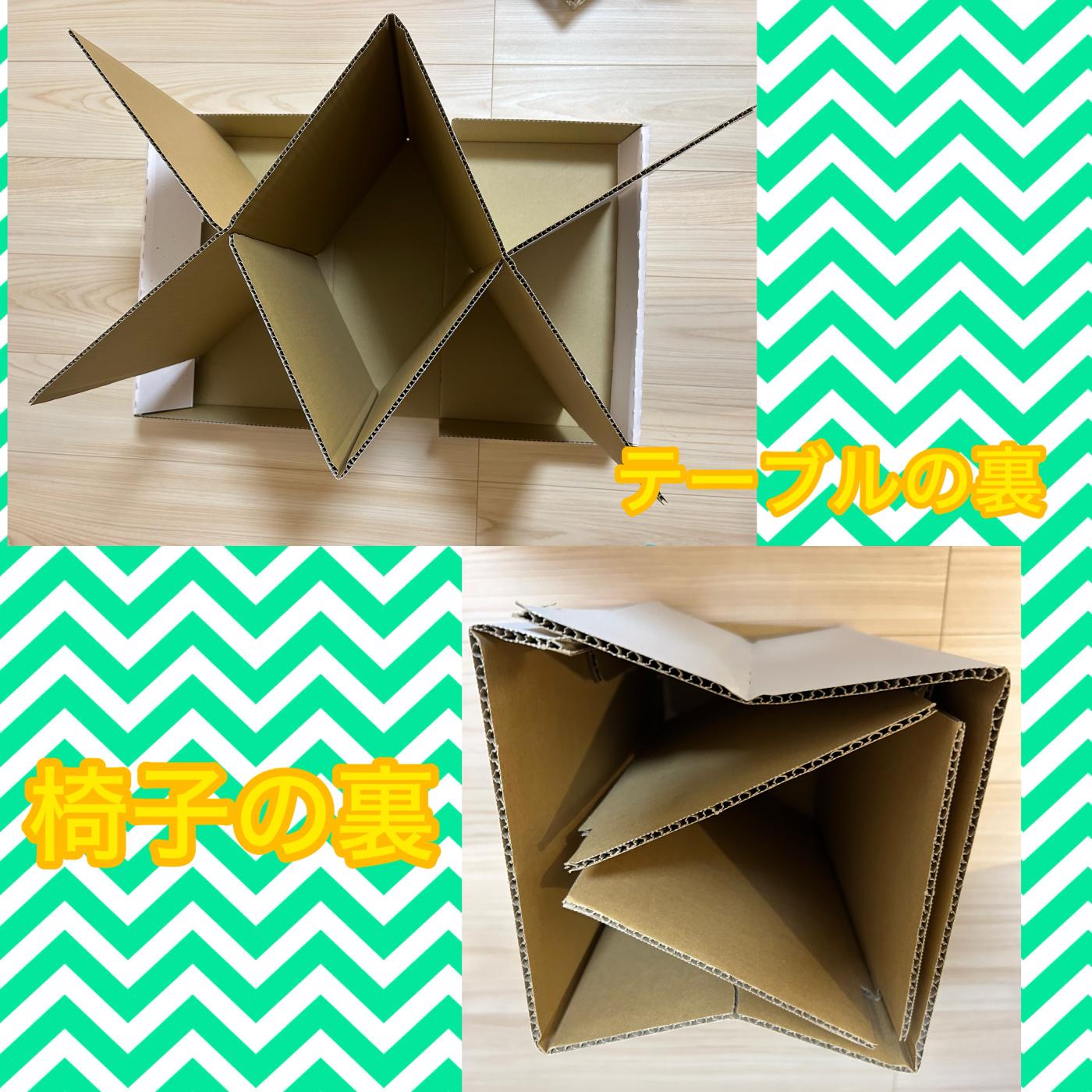 こちらはダンボール素材の椅子とテーブルで組み立ても簡単でした🤍