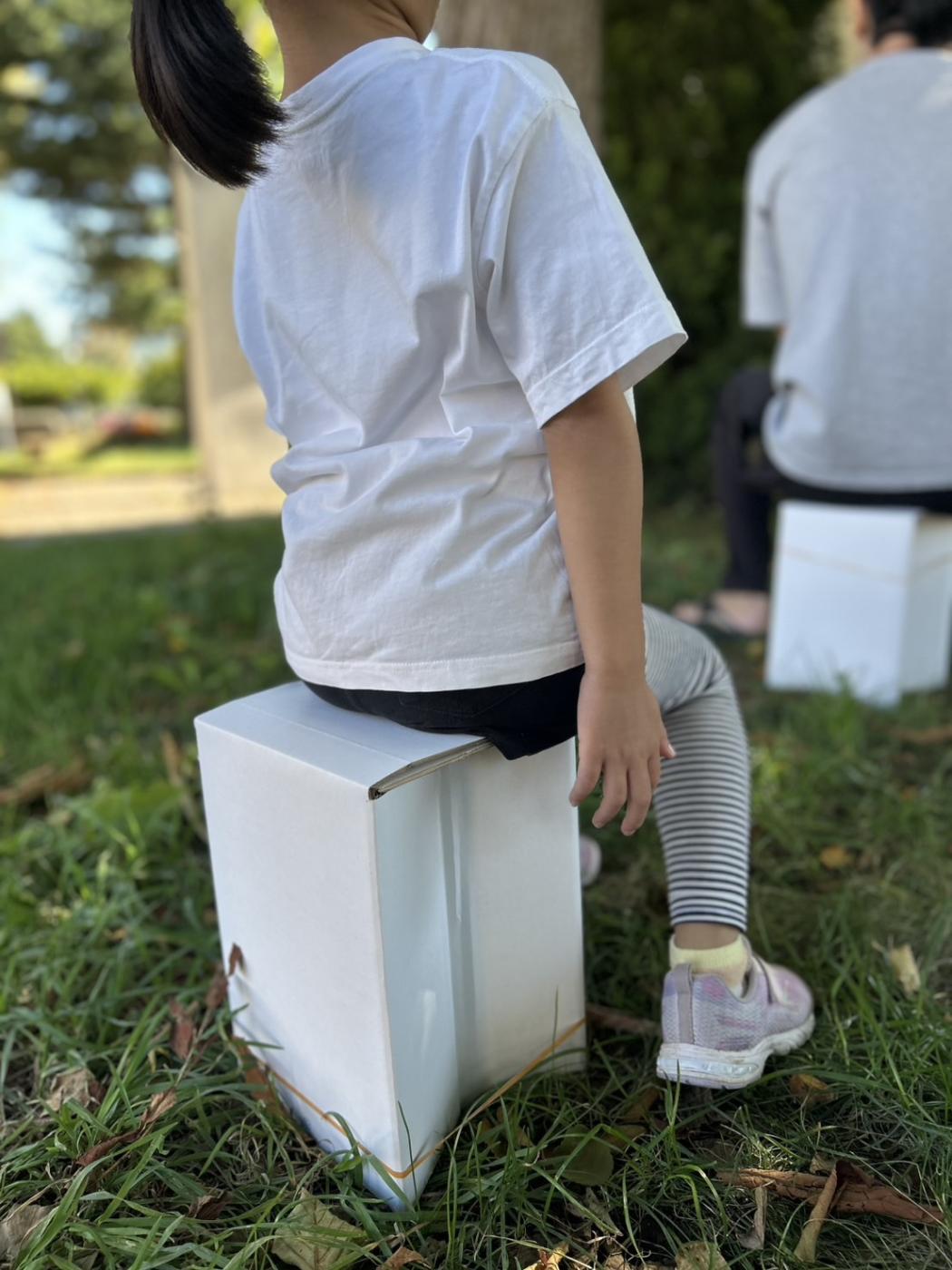 しっかりと厚みのある素材の紙?段ボールでできたイス!