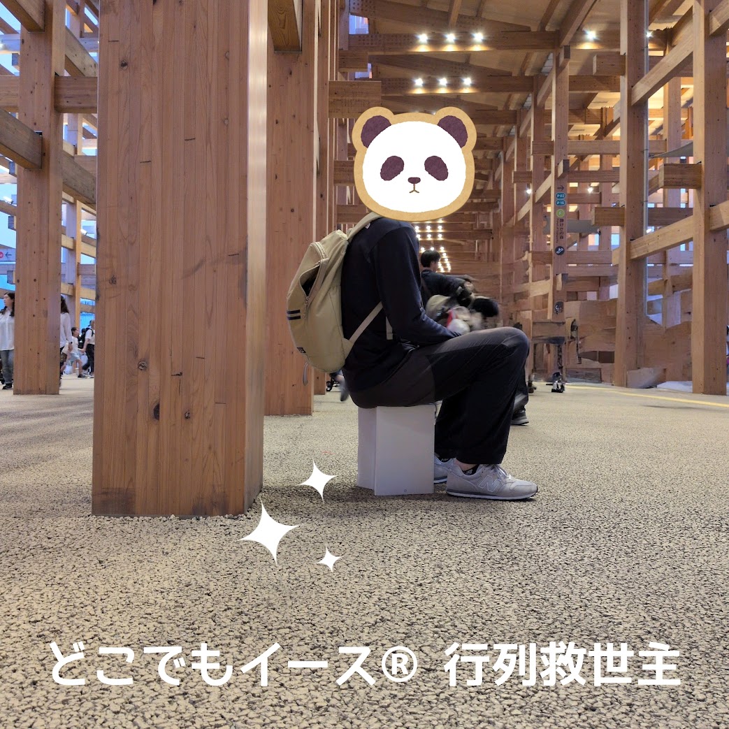 万博に設置されている椅子はすべて埋まっていた感じだったので、ちょっと疲れたときに邪魔にならない場所に座ったりして休む時に使いました。