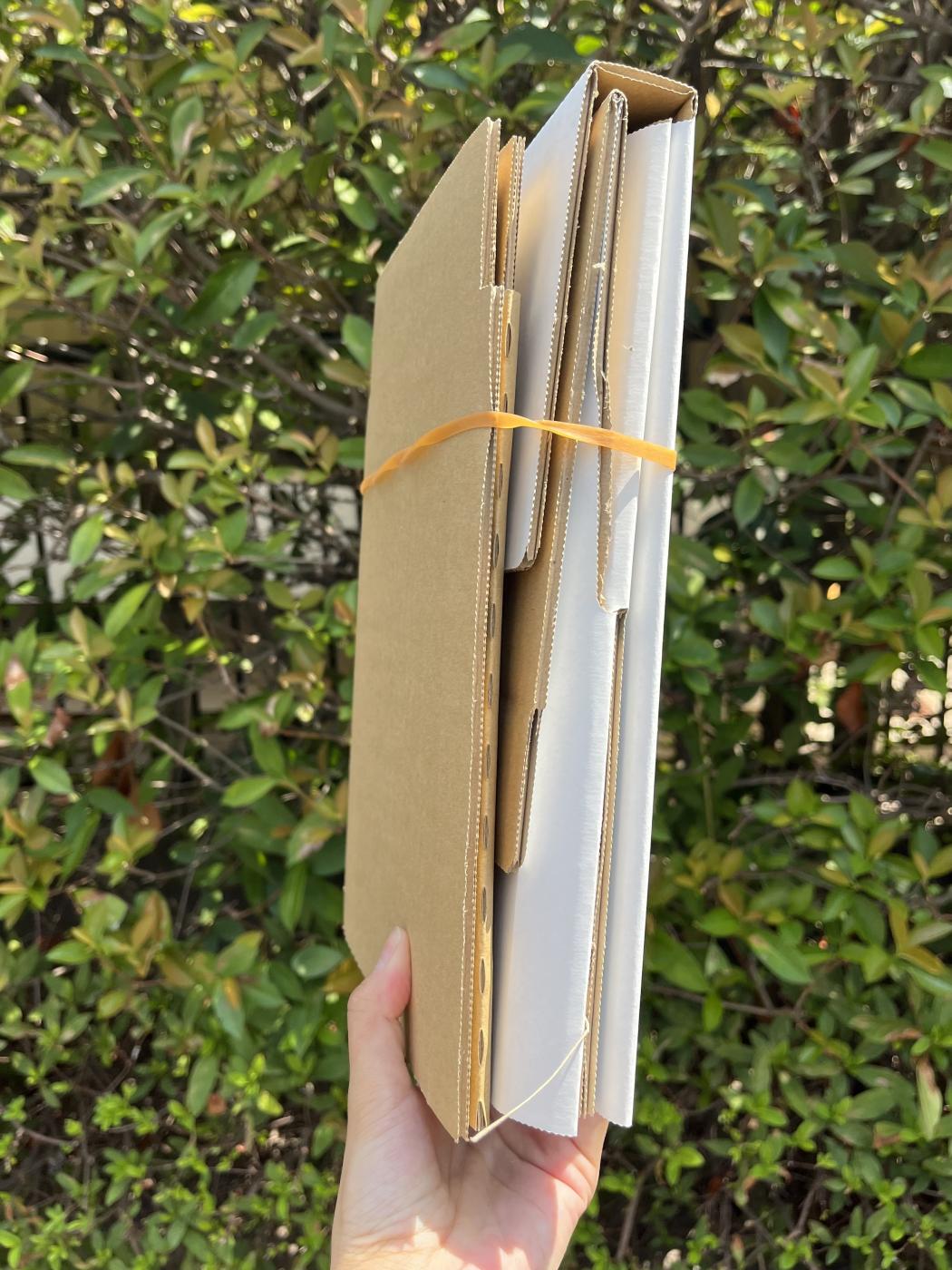 ダンボールで出来た折り畳み椅子!? どこでもイースという商品をお試しさせて頂きました。 畳んだ状態...