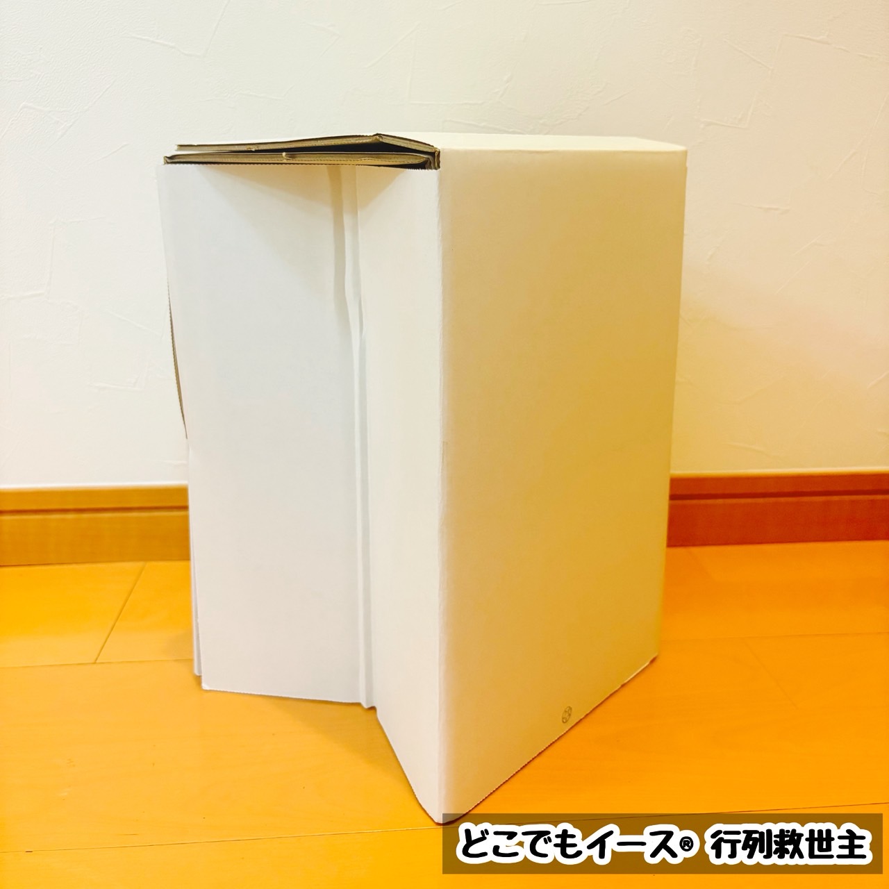 どこでもイース® 行列救世主は、ダンボール素材で作られた折りたたみ式の携帯チェアです。