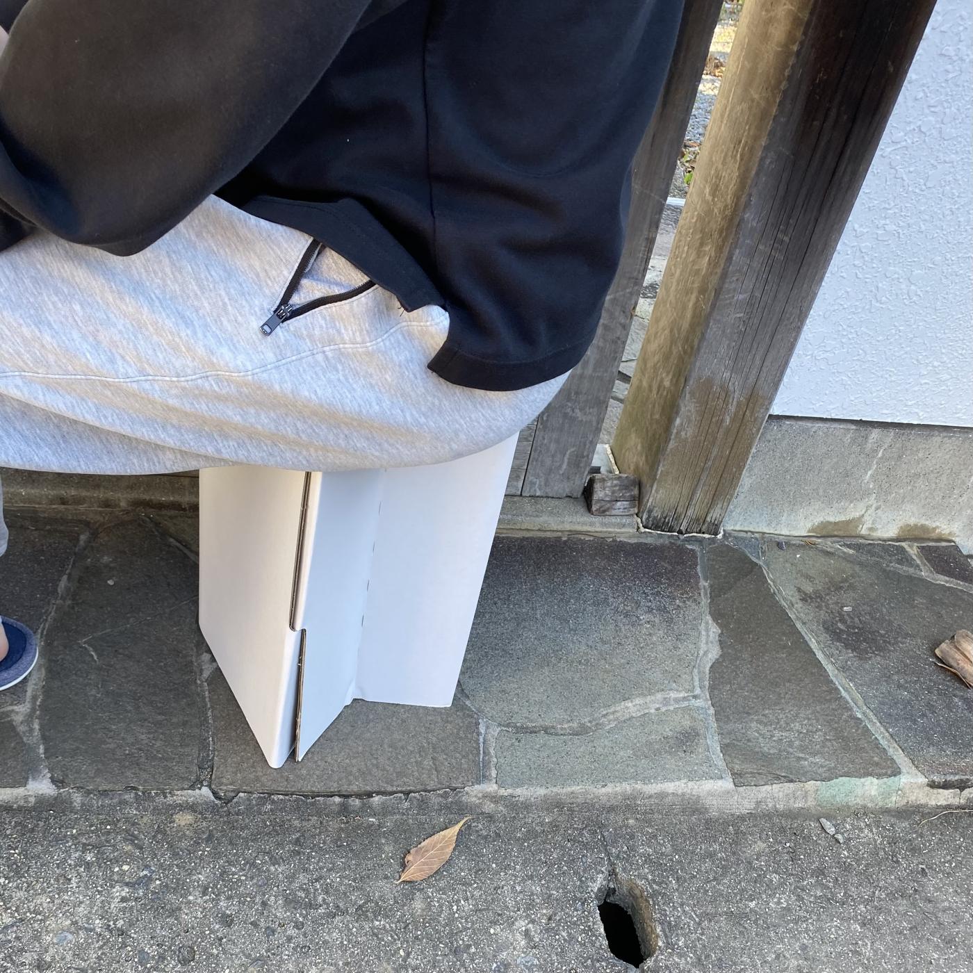 行列やイベントなどでちょっと座りたい時にすごく便利。しかもダンボールなので重たくなく、組み立てる前のコンパクトさも嬉しい。
