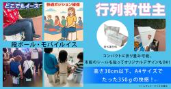 「どこでもイース」は、どこでもサッと広げて座れる携帯イス。 段ボール製で軽量、補強ツール付きで耐荷重80kg、実用新案登録出願済みの安心設計です。
