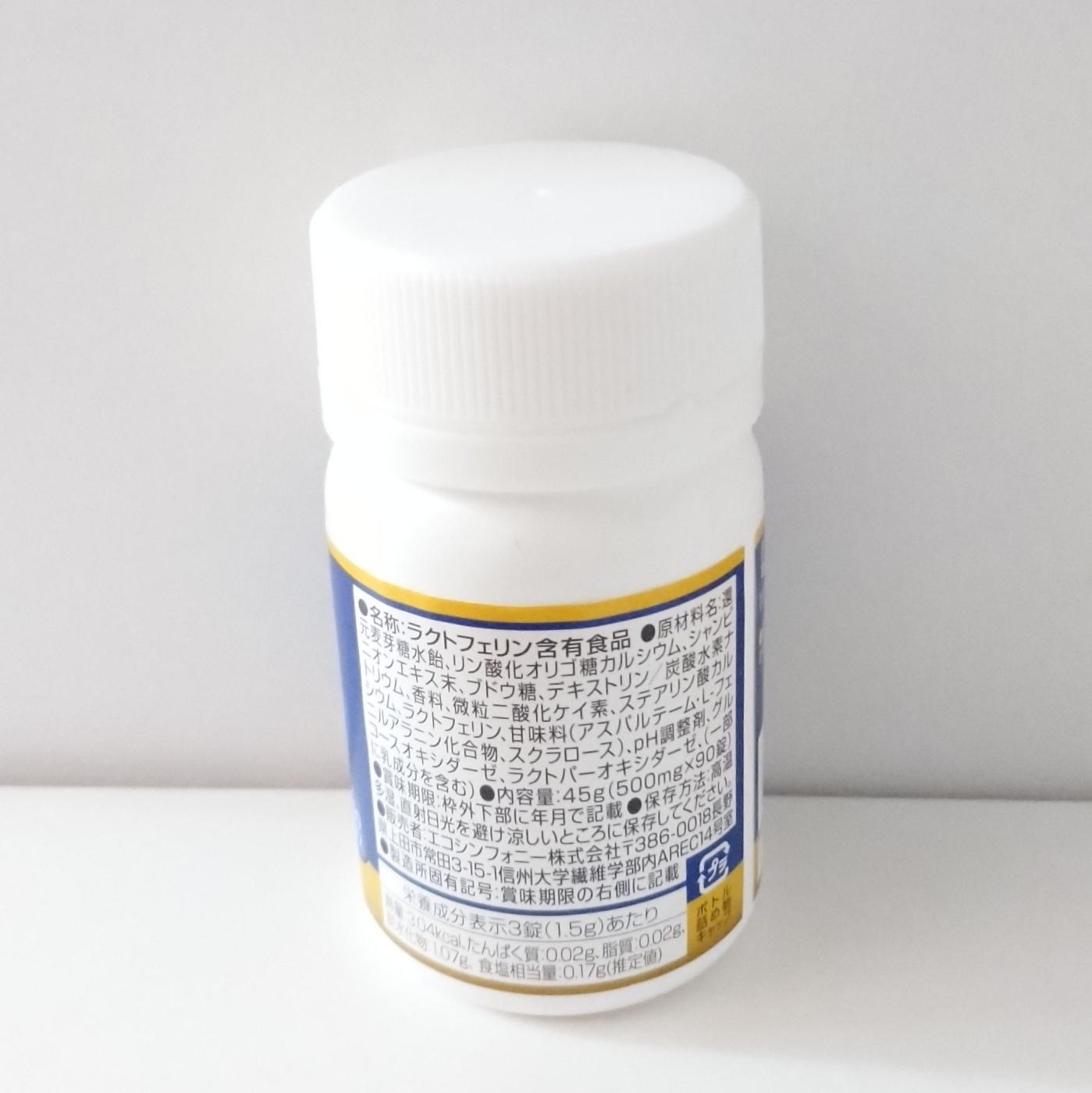 フタをあけてみると、白いサプリが90錠も入っています✨舐めてみるとラムネのヨーグルト味を思い出しました。自然な甘さがあります。1日3粒が目安なのですが、それ以上食べたくなってしまいます😏