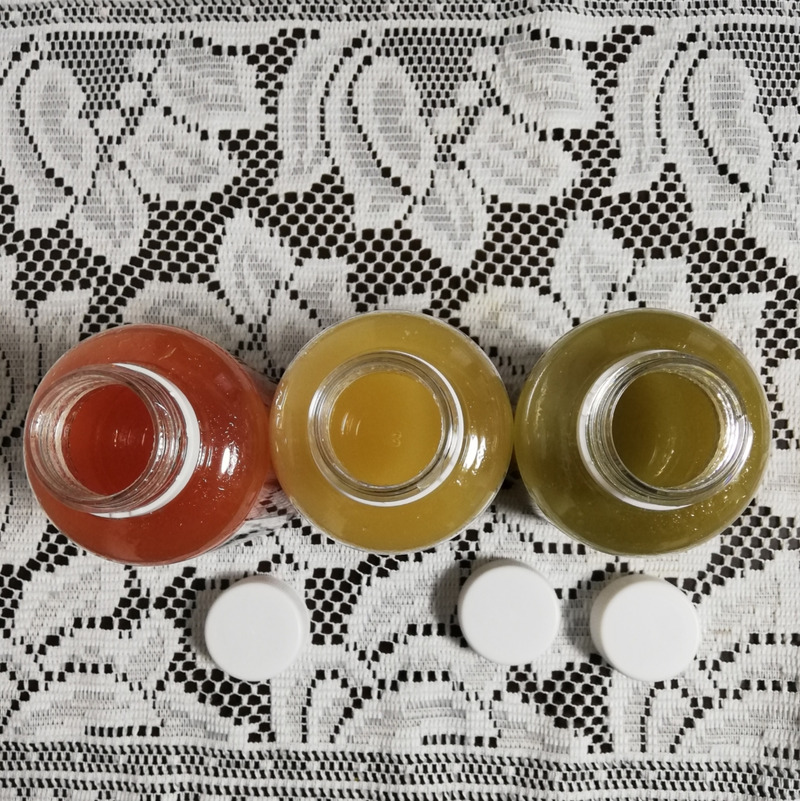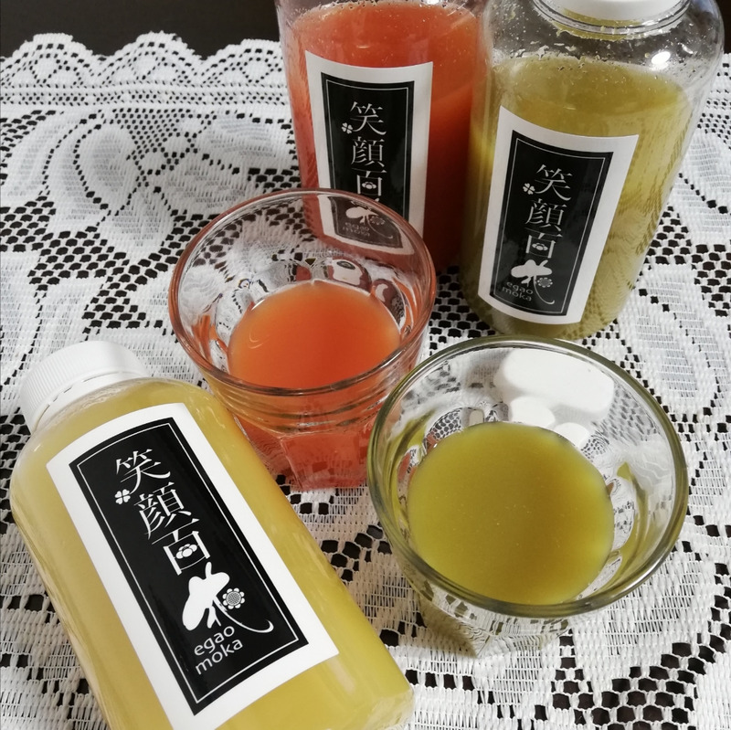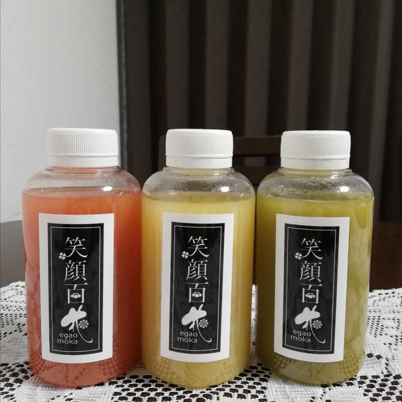 今回のコールドプレスジュースセットは、椿・四つ葉・日向葵の3本。