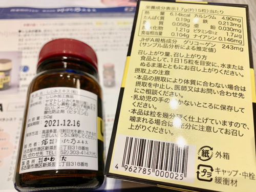 こちらは木曽川の淡水と海水が入り混じる水域で獲れる「ヤマトしじみ」を原材料として作られたサプリメントです。