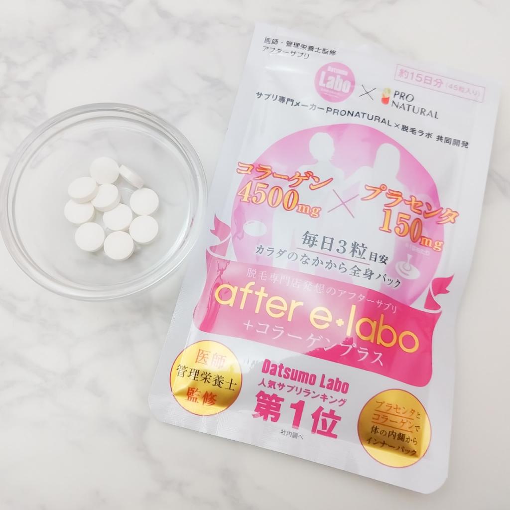 脱毛専門店“脱毛ラボ”が研究開発したコラーゲン&プラセンタのサプリ。 after e+labo(アフターイーラボ)...