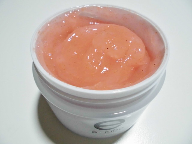 まるでミルクイチゴジャムのような色合いで、花のような良い香りがします。中に小さなスクラブの粒が入っており、お肌に塗布してマッサージすると気持ちの良さがあると感じました。
