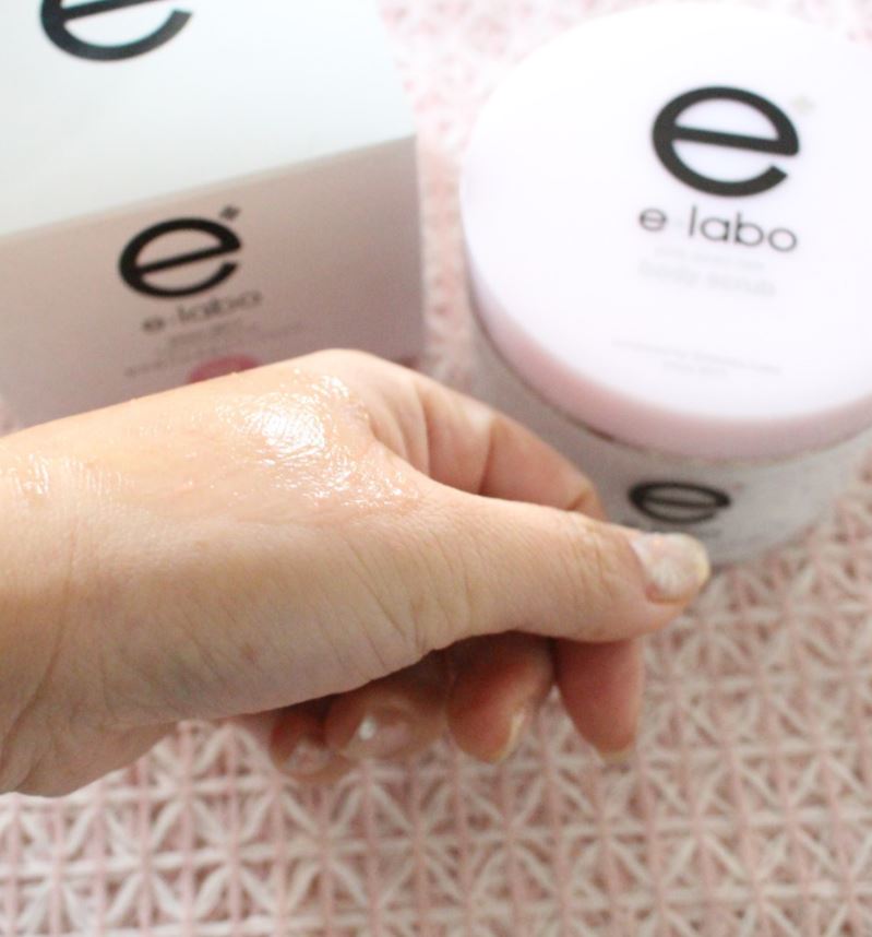 イーラボ ピンクパールリッチ ボディスクラブはプルンプルンのジェルです。