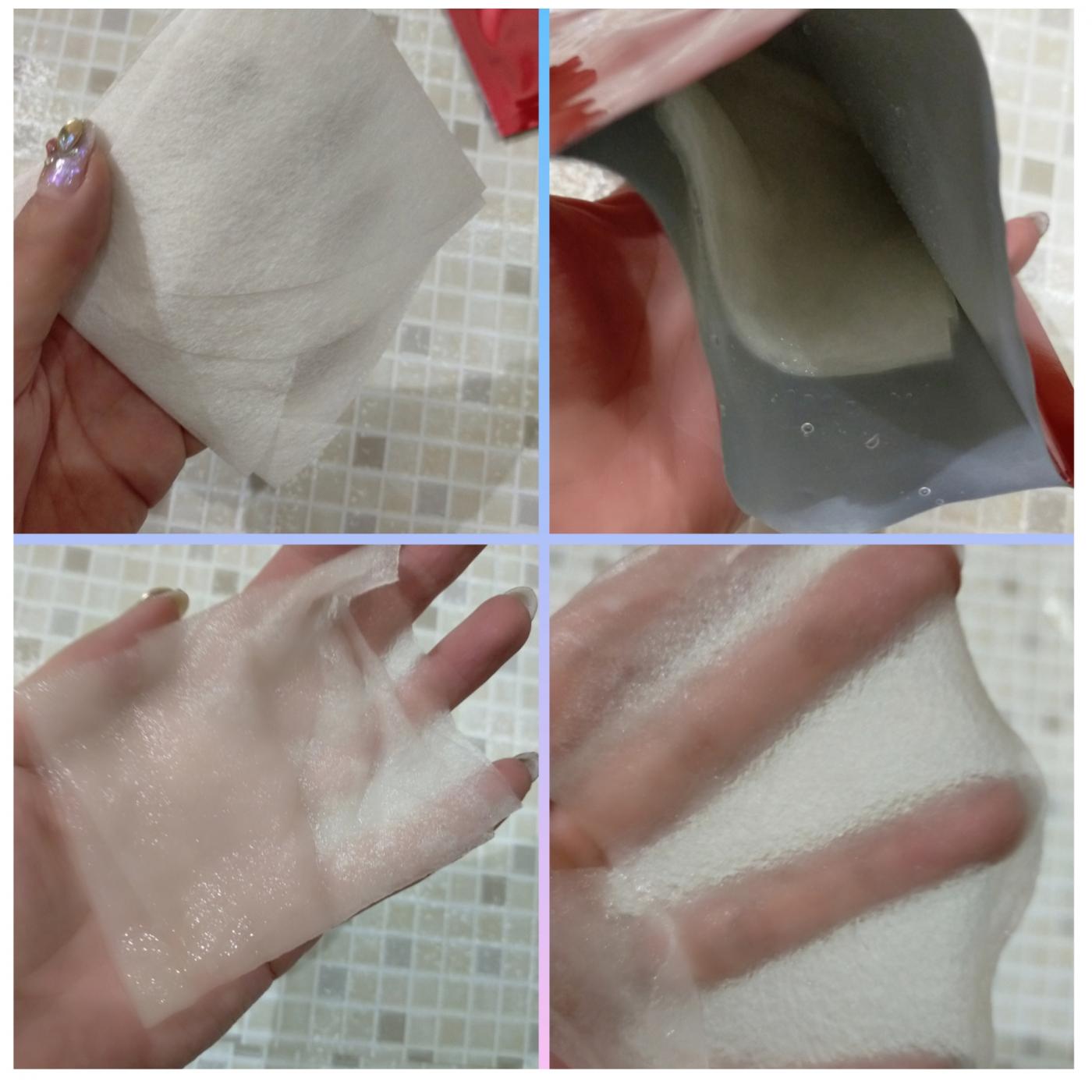 最新フリーズドライで作られた植物セルロースハイドロゲルマスク。施術時水に浸した瞬間にナノ化された成分が、美容効果を発揮する、新鮮・新感覚な美容マスクです。真っ赤なおしゃれパッケージ。1回分個包装。パック前に洗顔して、化粧水や美容液で整えて軽くマッサージしてからの使用。開封時は乾いた状態なので、袋の中に精製水(きれいな水でも可)を40ml入れて浸透。あっという間に袋の中でハイドロゲルマスクに。浸み込んだシートはプルプルでもっちりしたシートで切れ込みもあり、顔の隅々までしっかり密着。液垂れもないし、ズレもないのでパック中は別作業も快適。さらに、60分浸透し続けてくれるので美顔器などの使用も可能でシートの乾きがあれば水を足せばOK。なのでミスト状のボトルがあると便利。仕上げにパックしたままホットタオルをのせ2,3分ケアもおすすめ。さらにさらに、剥がした後は捨てずにゲル玉として顔や首や手などにクルクルと塗り込むのもポイント。剥がした後はさっぱりしてるけどうるおいたっぷりで肌もプルプル。くすみ、毛穴、ざらつきもケア。3日間続けて使用で1番の効果実感は肌の柔らかさと肌の透明感アップがすごい。集中ケア、スペシャルケアにぴったり!