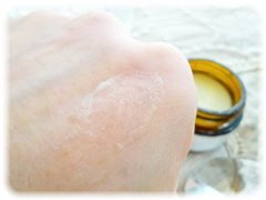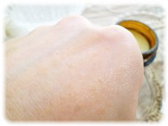 固めのバームですが、指の体温で溶けていき、柔らかい使い心地になります。体温で溶ける感じも良い使用感なので、お気に入りになっています。