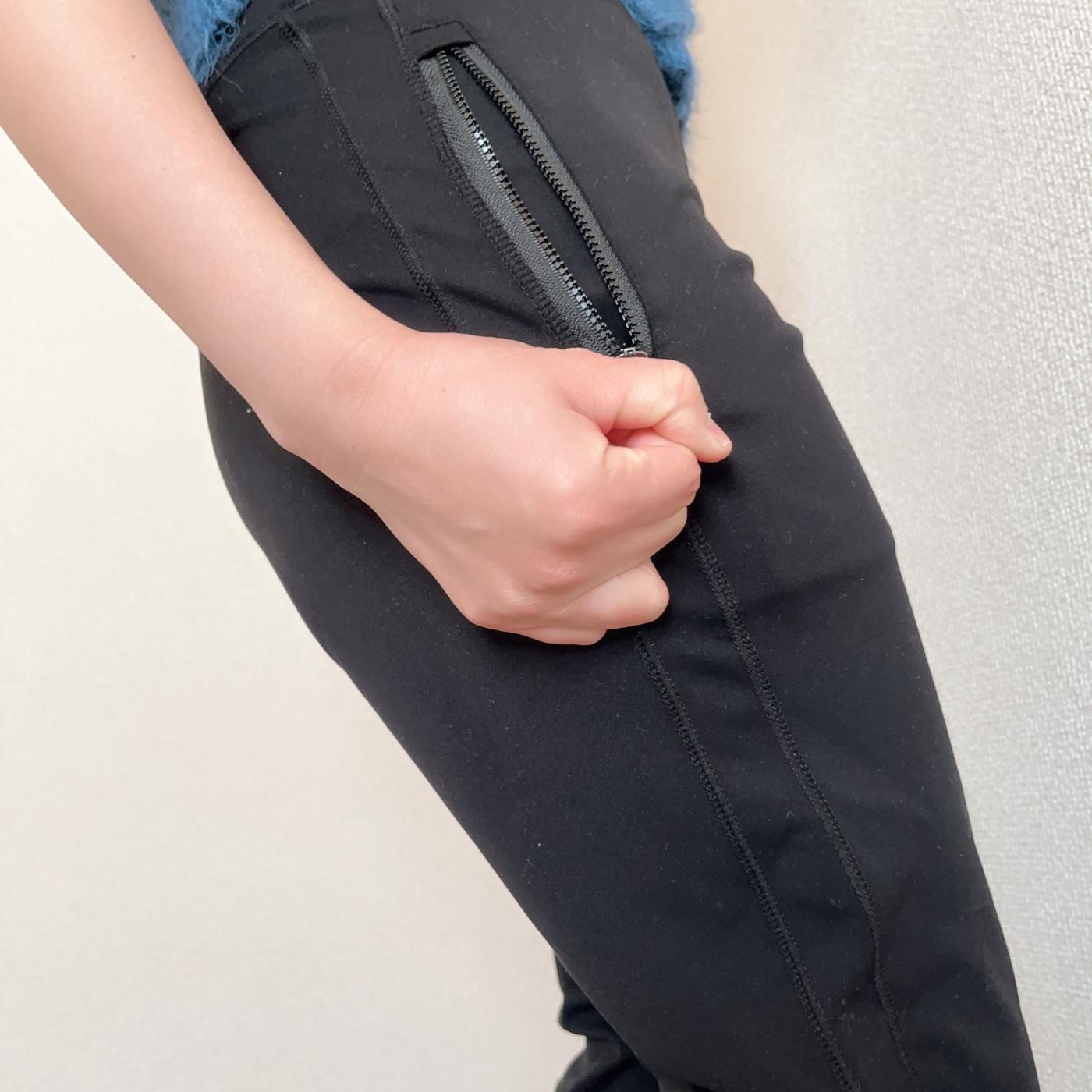 個人的に嬉しかった機能はスマホがすっぽり入る大きめのポケット、しかもジッパーつき!!