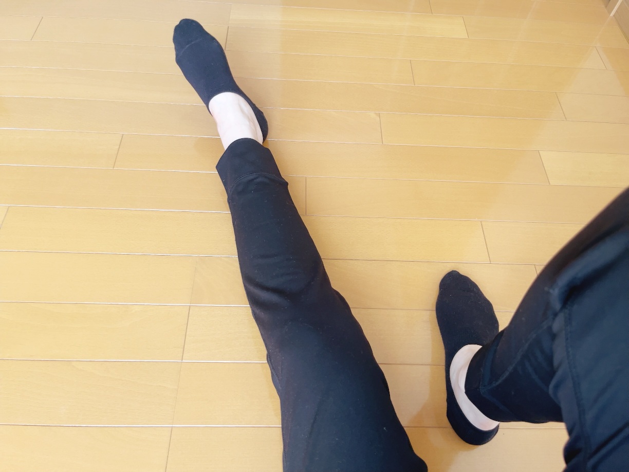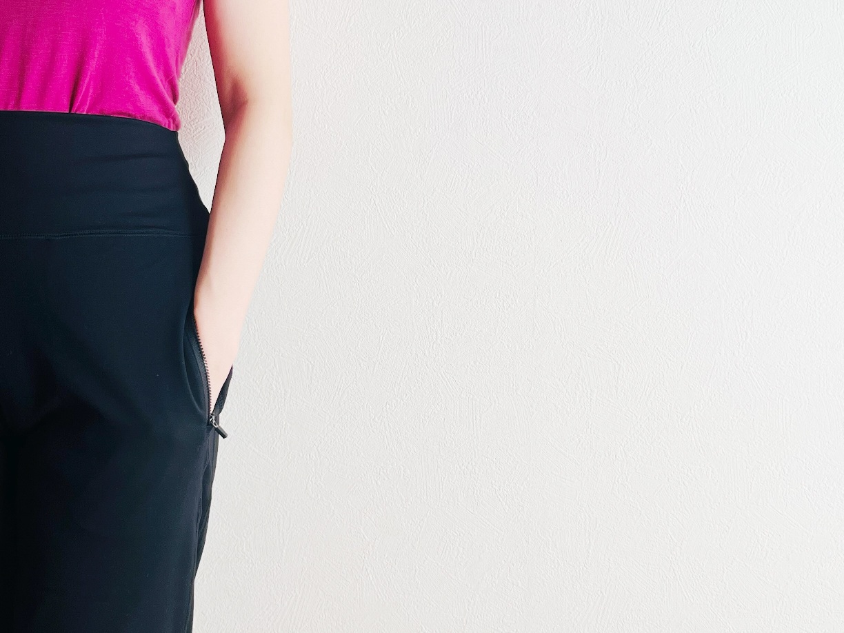 ハイウエストになっていて、しゃがんでも背中が見えないデザインになっていて、わたしが気になるぽっこりお腹や、太もも、お尻のラインをカバーしてくれます。