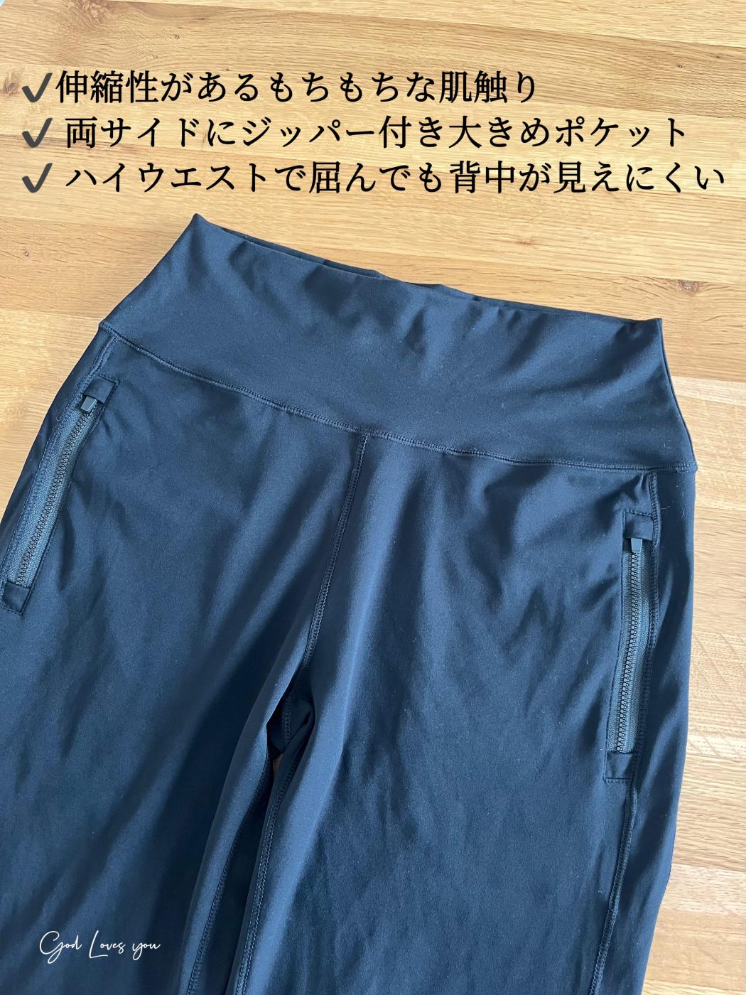 二番目にお気に入りの点は、デザイン。今、持っているパンツの中で、一番スタイルが良く見えるので、どんどん履きたくなります。スポーツだけでなく、普段着としても着れるデザインなので、さまざまなシチュエーションで履けるのが嬉しい。ジッパー付きの大きめのポケットがあるので、子どもを抱きかかえながらもカギなどちょっとしたものを入れやすく、かつ無くす心配もないのでとても助かります。