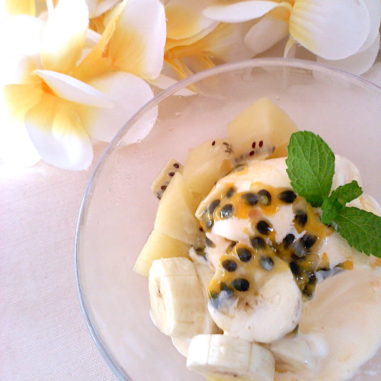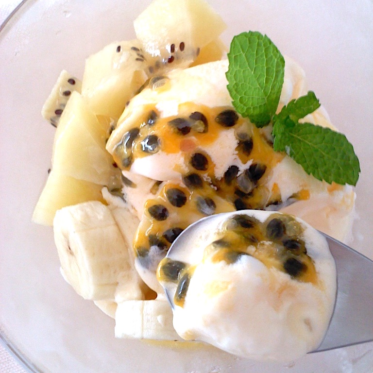 溶かしたパッションフルーツをかけたらめっちゃ南国なスイーツができました🏝🌺