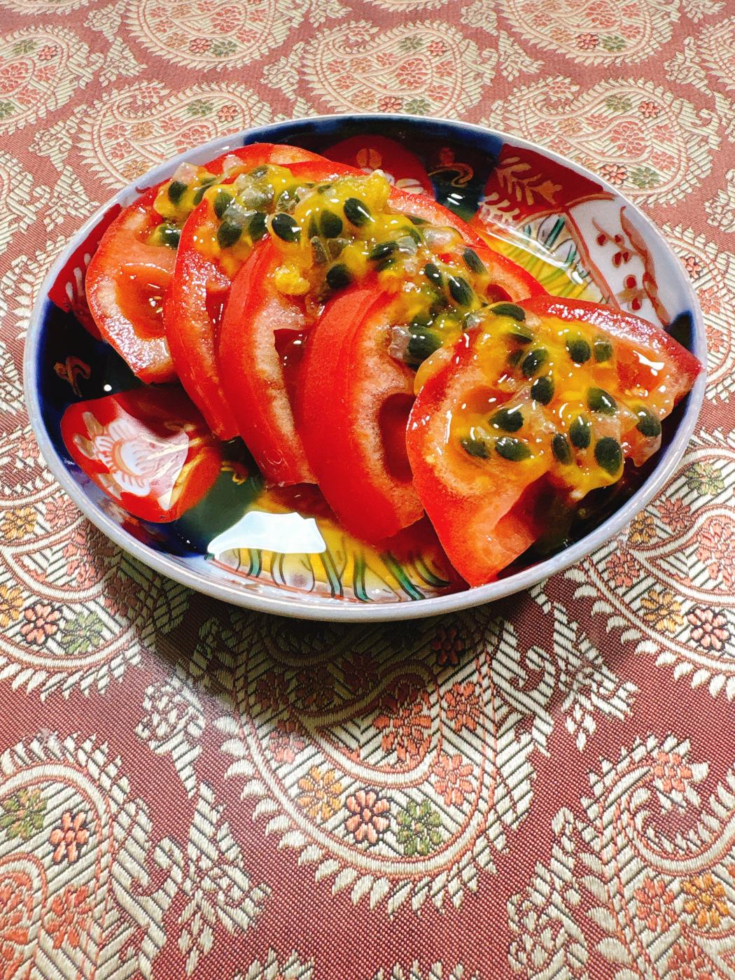 私はスライスしたトマトにかけていただきましたが、トマトの旨みとパッションフルーツの酸味が、絶妙にマッチしてとても美味しかったです。