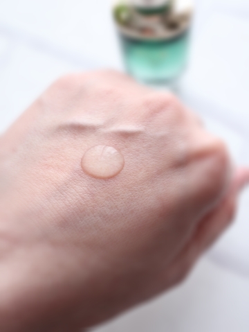 ちゅるんとした濃厚な伸びながら、手早く伸ばさないと、肌にすぐなじんでしまいます。