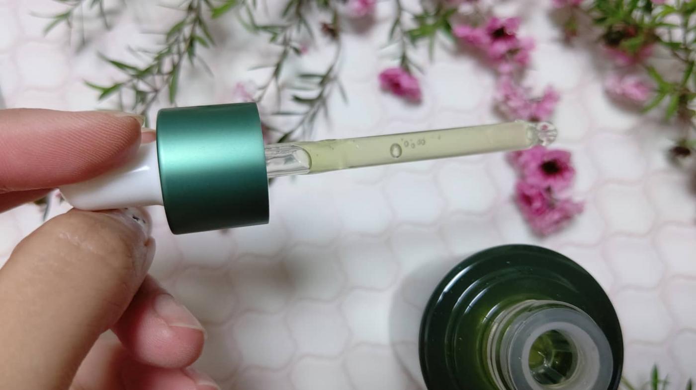 スポイト式なので取り出しやすく 中の液体も 緑色のとろみのある みずみずしいテクスチャー✨✨