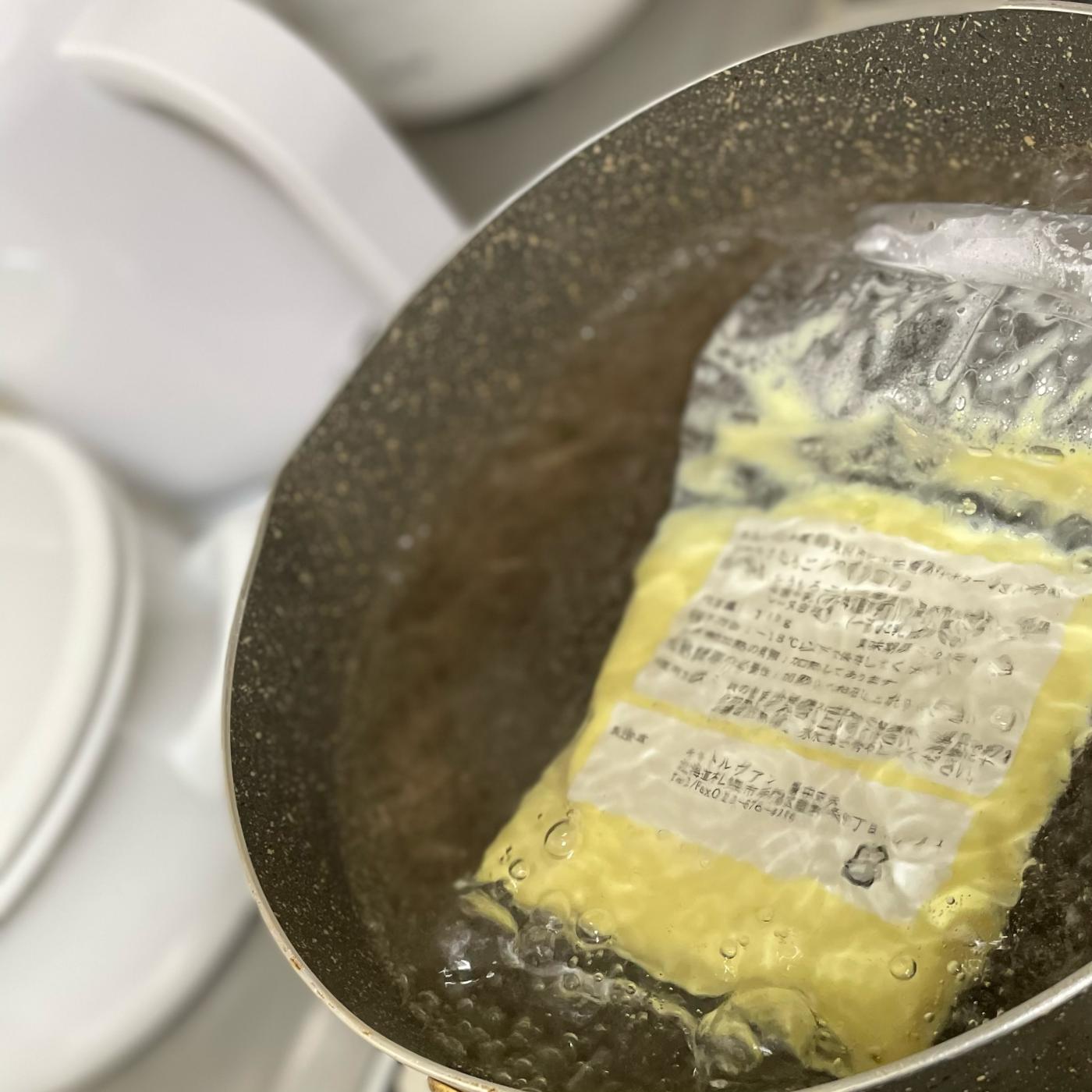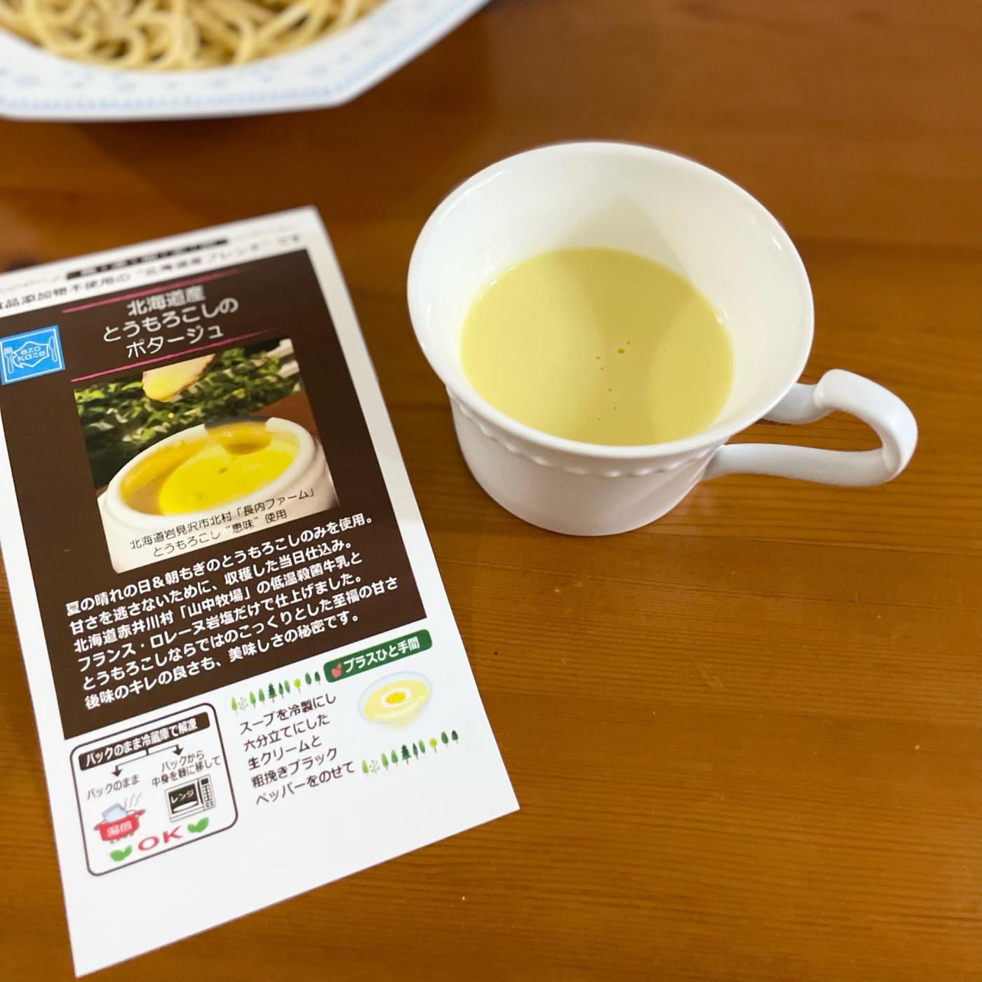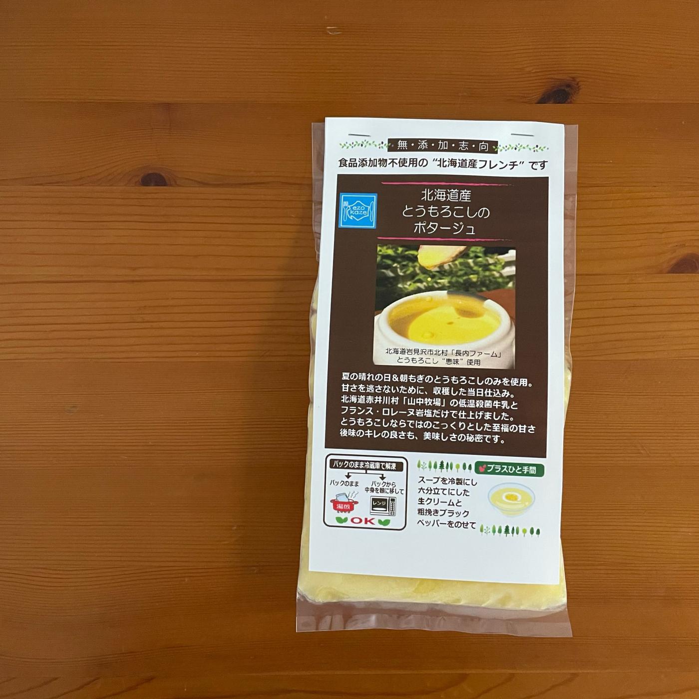 楽しみにしていたezokazeさんの北海道産とうもろこしのポタージュ 冷凍で届くので冷蔵庫で解凍してか...