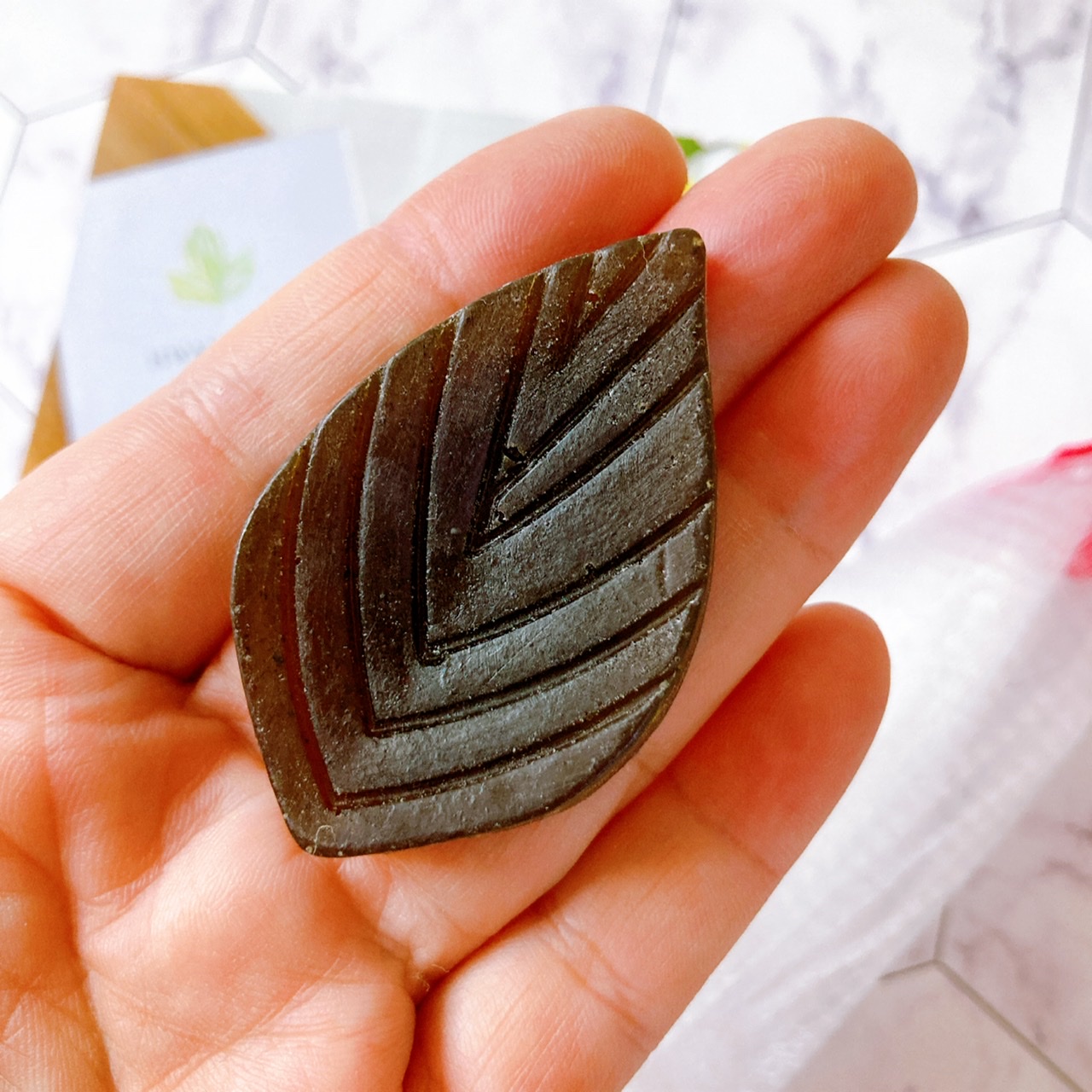 石鹸が黒っぽい色なんですが、これはカクレミノの自然な色で泡もすこし茶色みがありました🌿