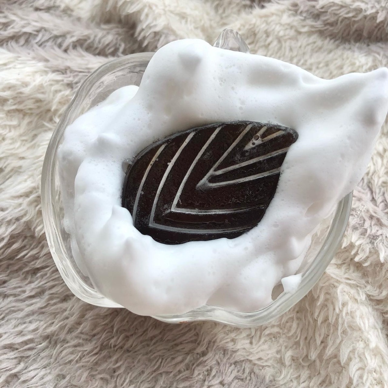 石鹸の色は朝鮮カクレミノ本来の色なんだそう。