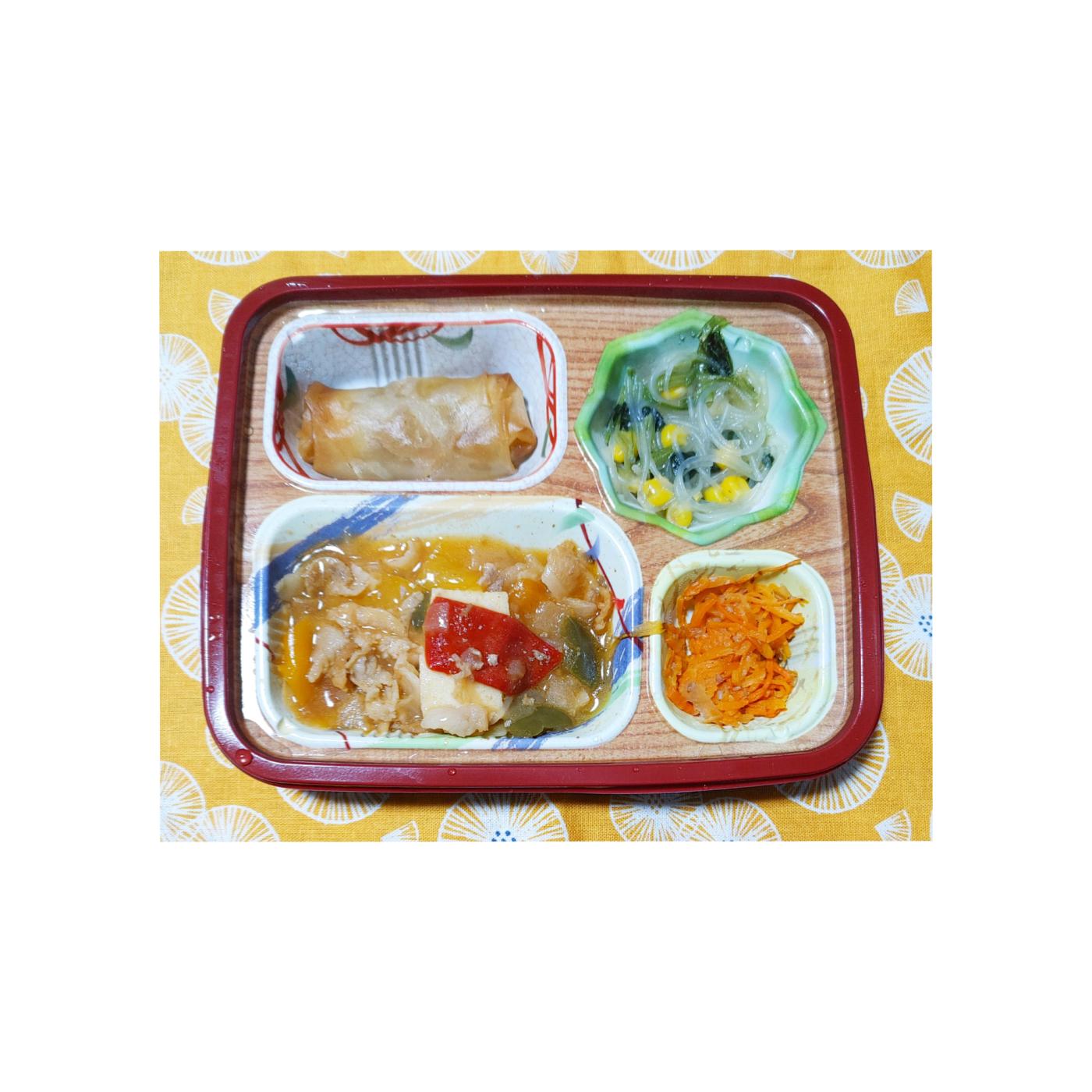 ✰︎家常豆腐、春巻、ほうれん草と春雨の中華スープ煮、人参のナムル