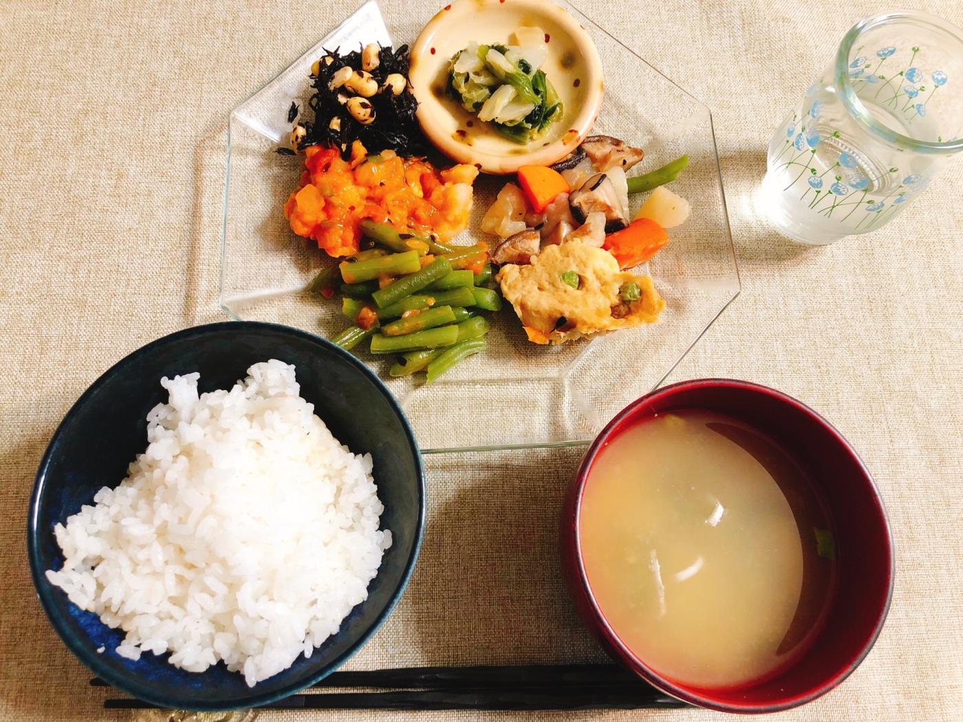 休日のお昼ご飯。 お野菜もたっぷりで彩り豊かで とても豪華なおかずたち🍚🥬🍅🎃 休日はご飯作る気が...
