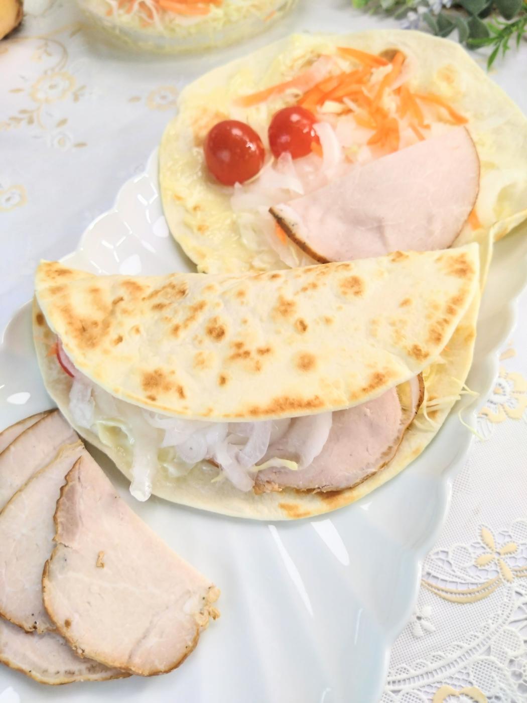 淡路島産玉ねぎメインのサラダと一緒にトルティーヤで食べてみました。