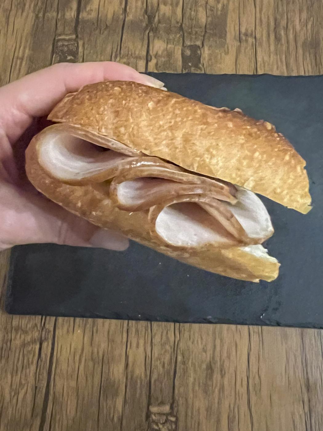 冷蔵庫でゆっくり解凍し、さっそく朝食用にカスクートにしていただきました。