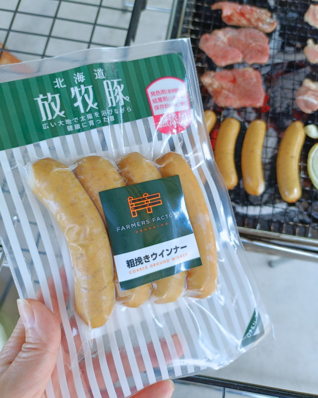 結着剤・発色剤・保存料・化学調味料不使用の "北海道放牧豚ポークウインナー"をいただき、家族みんなで堪能させていただきました♡