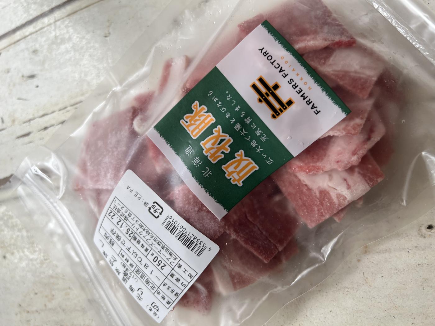 北海道放牧豚の切り落としを贅沢に3袋も頂きました😆 バラバラにほぐれた状態で冷凍されているので、使...