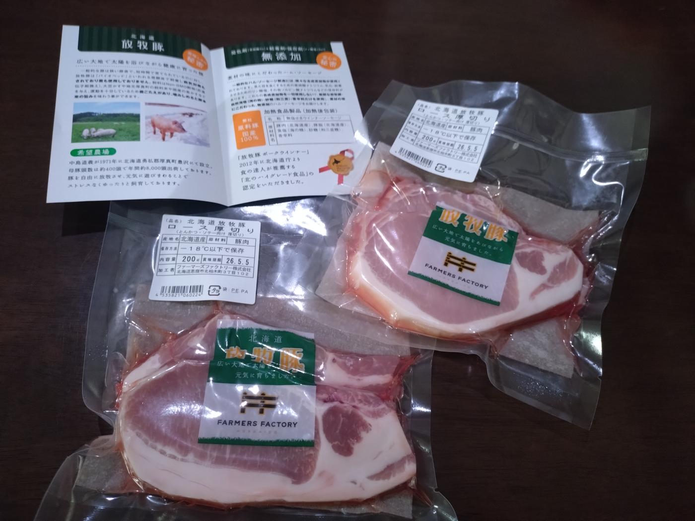 「北海道放牧豚ロース厚切り」200g×2 を 食べてみました 放牧豚は色つやがよく、見た目もとても綺麗...